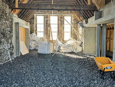 Choosing the recycled glass aggregate for the foundation as more environmentally friendly option over standard commercial aggregate. This decision not only supports sustainability but also provides breathable floor insulation. Moreover, it possesses lightweight characteristics, insulation properties, moisture resistance, dimensional stability, and durability against aging. You'll see this in the images of Phase One/Stage Two Critical Works the chips spread on the floor.